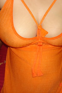 Hot Indian Housewife Saima In Orange Nighty From Amritsar Laying On Bed Ready For Blowjob in this exclusive Indian porn photos.